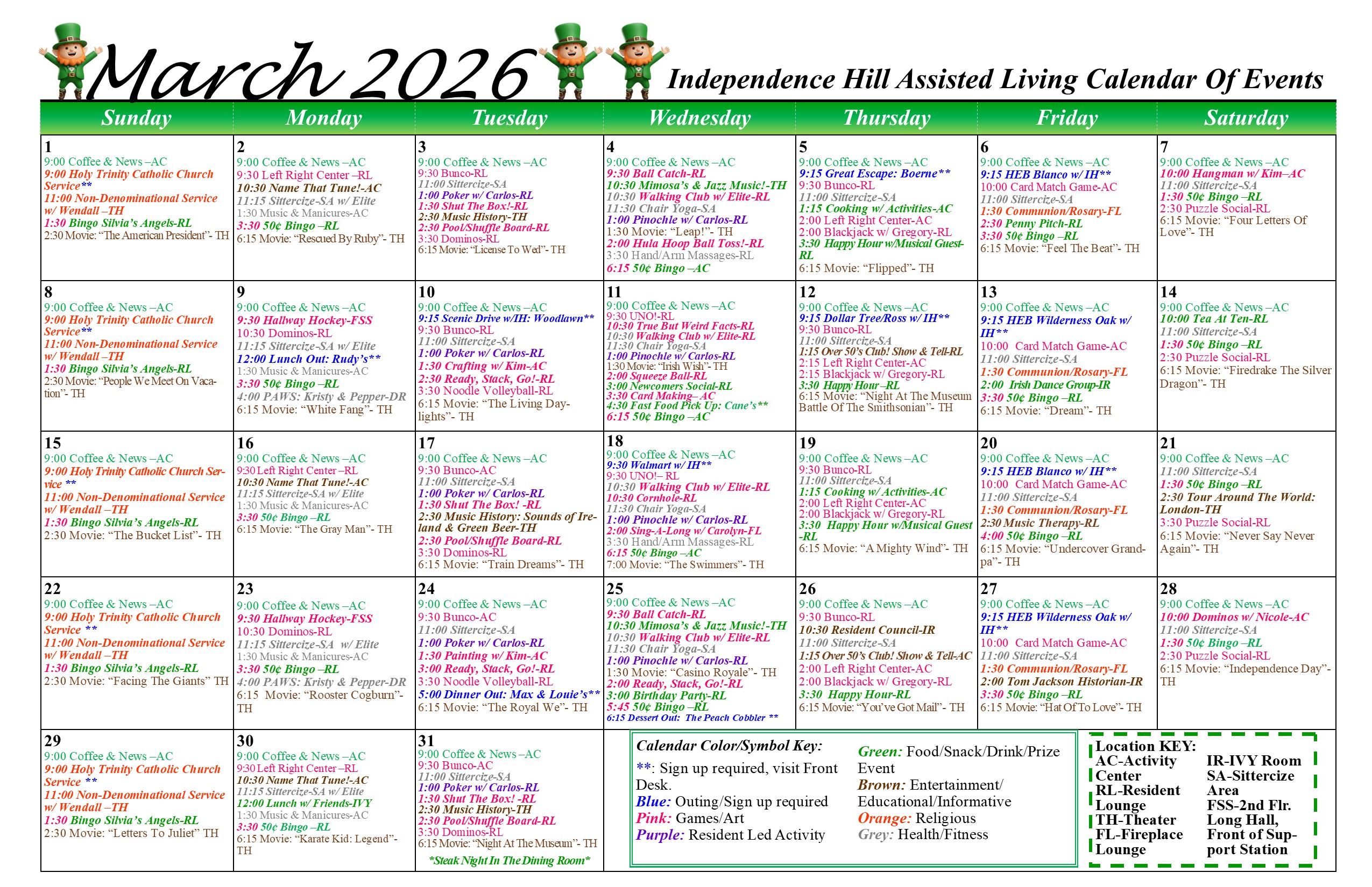 - Live music, movies, and holiday-related options